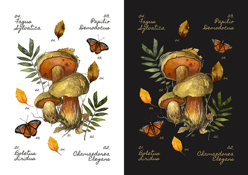I have designed this illustrations that can be used in many ways, printed for the decoration of your room, kitchen or for educational purposes in a space dedicated to learn or just for promoting the love and appreciation of nature, forest and earth. These prints are not limited here, they can be used from foraging events, species identification workshops, mushroom photography tours, creating foraged drinks and products. No matter what you want to do, its all yours.