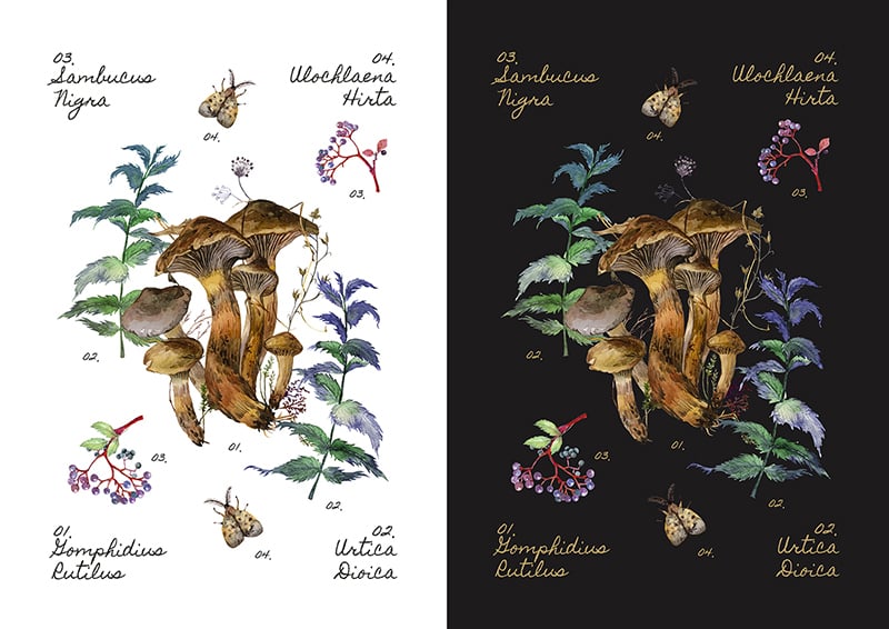 I have designed this illustrations that can be used in many ways, printed for the decoration of your room, kitchen or for educational purposes in a space dedicated to learn or just for promoting the love and appreciation of nature, forest and earth. These prints are not limited here, they can be used from foraging events, species identification workshops, mushroom photography tours, creating foraged drinks and products. No matter what you want to do, its all yours.