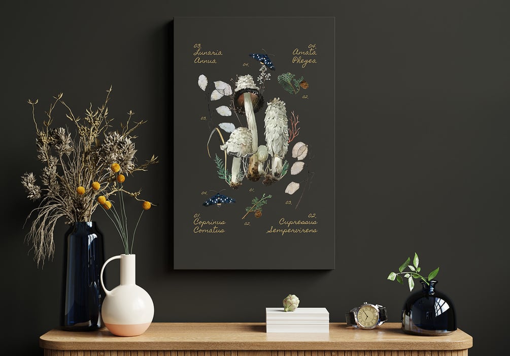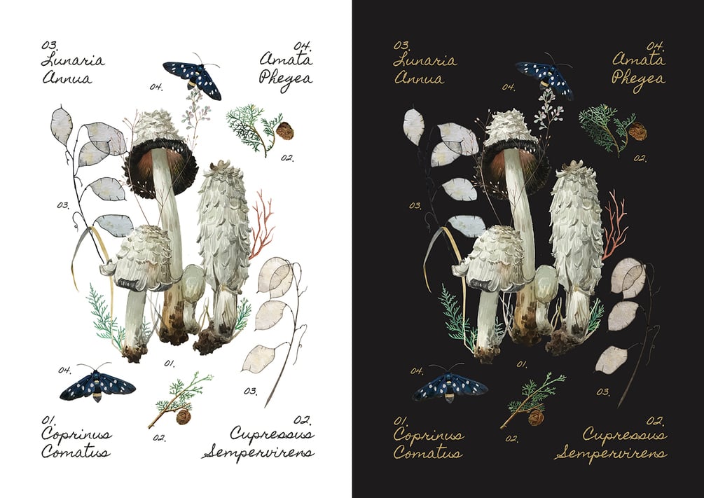 I have designed this illustrations that can be used in many ways, printed for the decoration of your room, kitchen or for educational purposes in a space dedicated for learning or just for promoting the love and appreciation of nature, forest and earth. These prints are not limited here, they can be used from foraging events, species identification workshops, mushroom photography tours, creating foraged drinks and products. No matter what you want to do, its all yours.